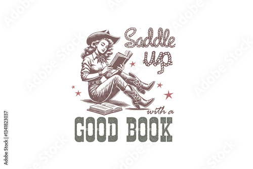 Saddle Up With A Good Book, Vintage Western CowGirl PNG Sublimation Design