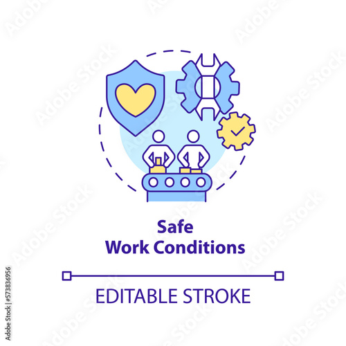 Safe work conditions concept icon. Employees safety. Private sector regulations abstract idea thin line illustration. Isolated outline drawing. Editable stroke. Arial, Myriad Pro-Bold fonts used