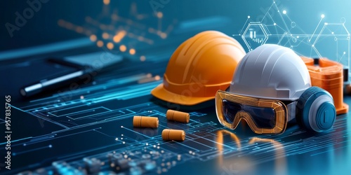 Safety Equipment with Tech Icons for Smart Construction