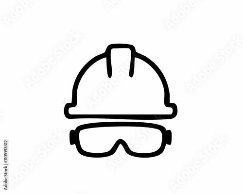 Safety Helmet and Goggles Icon Construction, Worker, and Protection Symbol in Line Art