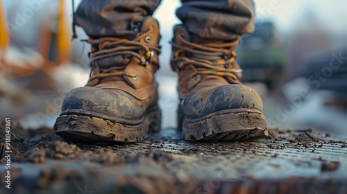 Safety Shoes of Workers on a Construction Site Safety Construction : Generative AI