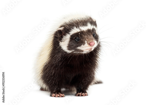 Saharan striped polecat, Ictonyx libycus, isolated on white