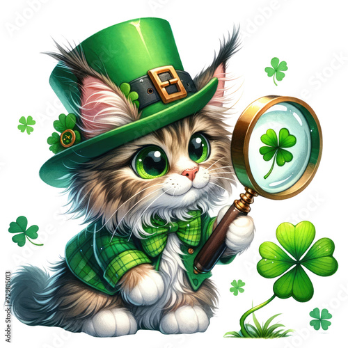 saint patrick's cat Maine Coon cat in St. Patrick's Day theme, transparent background