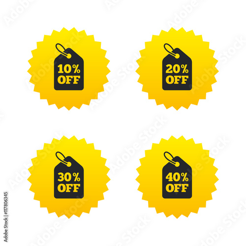 discount, sale, special, offer, off, coupon, market, best, price, tags, percent, deal, clearance, shop, business, retail, ten, 20, 30, 40, reduction, seasonal, icon, signs, buttons, symbol, flat, label, mark, token, shape, information, set, badge, app, vector, star, website, yellow, round, orange