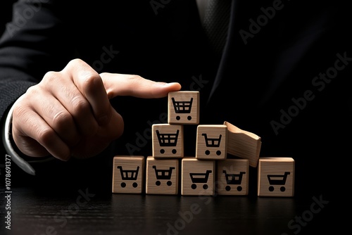 sale volume increase make business grow, Flips cube with icon graph and shopping cart symbol.