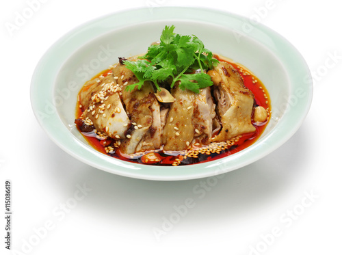 saliva chicken, mouthwatering chicken, poached chicken with chili oil sauce, China Sichuan cuisine
