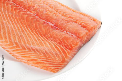 salmon fillet on white plate