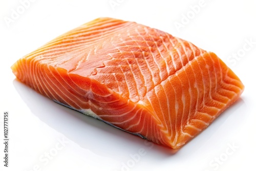 Salmon fillet placed on a white background captured from a tilted angle, white background, cooking, delicious, fresh, ingredient, omega-3, seafood, isolated,salmon fillet, cuisine
