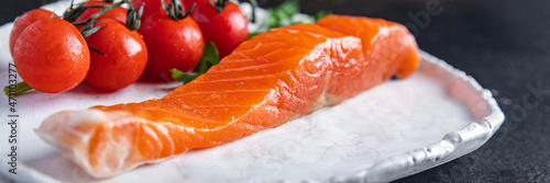 salmon slice red fish seafood meal snack pescetarian diet on the table copy space food background rustic. top view keto or paleo diet vegetarian food