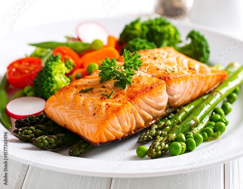 salmon, vegetable, healthy, food, plate, cooked, dinner, protein, diet, dish, grilled, fresh, meal, appetising, delicious, colourful, alimentary, balanced, lunch, portion, closeup, appetiser, receipe