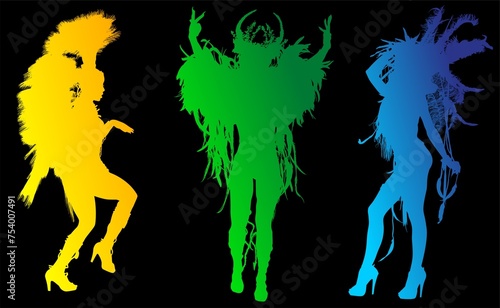 samba, dancing, brazil, dance, carnival, silhouette, colours, vector, sticker, feather, dress, devil, woman, illustration, fashion, people, beauty, design, disco, music, party, grunge, art, flower, hair, summer, fairy, black, flower, pattern, rose, love