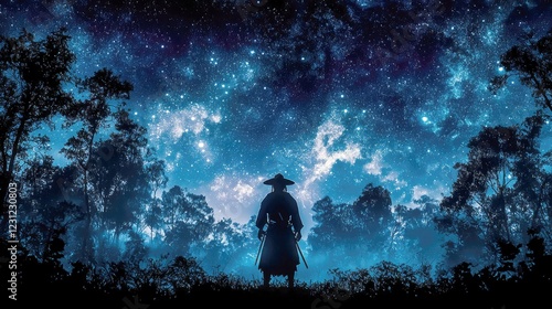 Samurai Under the Starry Night: A Mystical Japanese Forest Scene