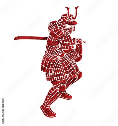 samurai, warrior, ninja, weapon, troop, sword, bushido, soldier, japan, japanese, hero, helmet, fight, action, armoring, army, battle, blade, man, male, vector, illustration, cartoon, logotype, silhouette, graphic, brush, grunge
