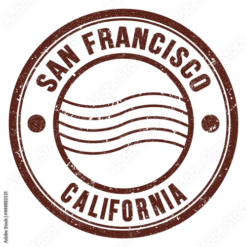 SAN FRANCISCO - CALIFORNIA, words written on brown postal stamp
