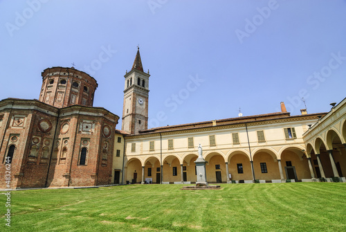 crema, cremona, europa, italy, lombardia, arcade, arch, belfry, blue, church, cloister, colonnade, colours, column, day, fountain, grass, green, horizontal, nobody, photo, sanctuary, sky, sunny, tower