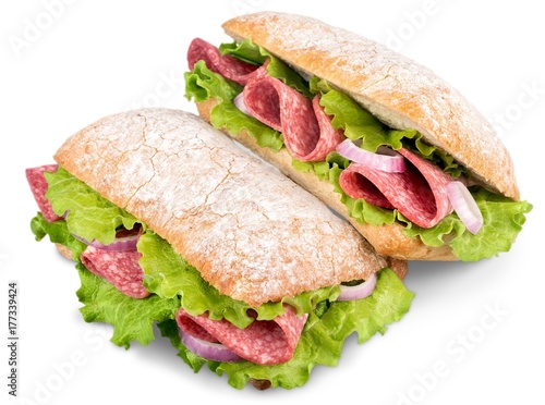 sandwich, bread, healthy eating, food, portion, white background, lettuce, isolated on white, salami, onion