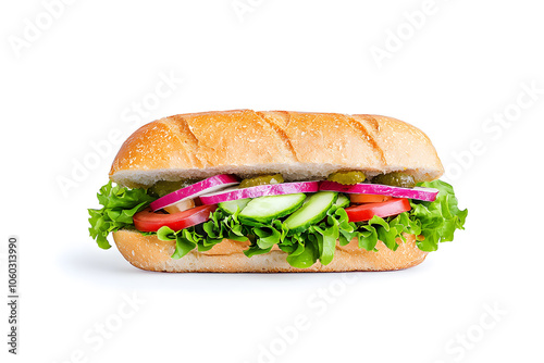 Sandwich with fresh ingredients, isolated on white background