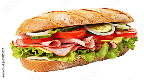 sandwich, bread, vegetable, snack, lettuce, ham, lunch, fresh, meat, healthy, food, white, cheese, breakfast, salad, fast, dinner, tomatoes, slice, meal, isolated, delicious, take-away, leaf, green, homemade, epicure, background, junk, fast food, cold, long, submarine, salami, cut, italian, tasty, nourishment, turkey, chicken, diet, toasted, club, grilled, toast, bacon, baguette, sliced