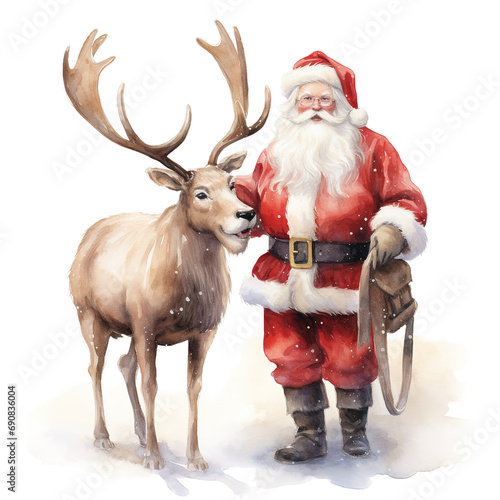 Santa and Reindeer For Christmas Event. Watercolor Style. AI Generated