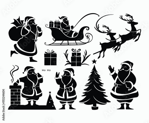 christmas, illustration, vector, aged, emblem, event, examining, fantasy, festive, graphic, hat, image, list, magic, merry, midnight, no people, north, present, ribbon, sale, seasonal, tale, santa, silhouette, holiday, christmas design