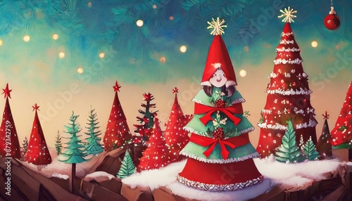 christmas, tree, holiday, decoration, christmas, christmas tree, celebration, winter, star, snow, gift, fir, illustration, vector, ball, season, year, new, new year, pine, green, december, merry, design, snowflake