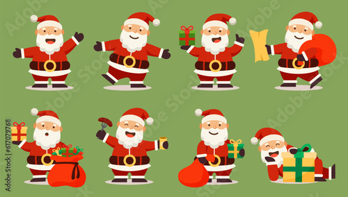 Santa Claus characters in various poses and scenes. Merry Christmas cutout element