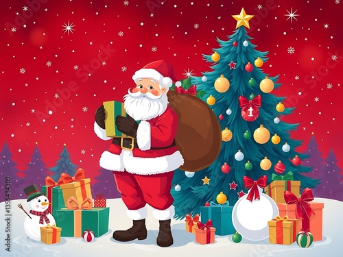 santa, christmas tree, festive season, merry christmas, holiday spirit, christmas gift, christmas decoration, happy holiday, christmas eve, christmas night, red background, snowman, candy cane, reindeer, winter landscape, christmas ornament, north pole, snowfall, christmas