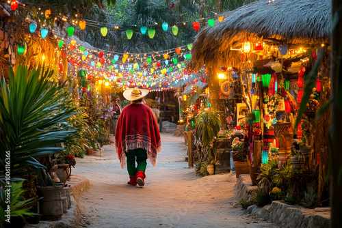 new year, christmas, holiday, 2025, santa, sombrero, poncho, garland, folk art, decoration, sunset, festivity, gift, traditional, vibrant, culture, community, celebration, winter, joy, magic, charming, pastoral, family, togetherness, twinkling, scene, cheerful