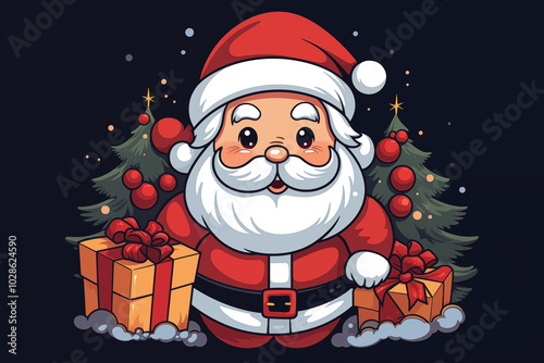 santa, festive, holiday, christmas, tree, decoration, costume, christmas, event, present, happy, gift, home, resting, eve, interior, christmas, celebration, beard, new, armchair, claus, merry, year, magic, children, party, cosy, christmas gift, illustration