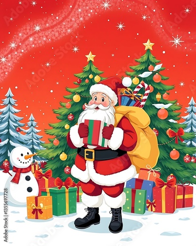 christmas, santa, christmas tree, gift, festive season, christmas decoration, winter landscape, christmas, holiday spirit, christmas ornament, snowflake, candy cane, merry christmas, digital illustration, christmas design, christmas card, holiday greeting, winter holiday, christmas eve, christmas night, christmas spirit, happy holiday, gift wrapping