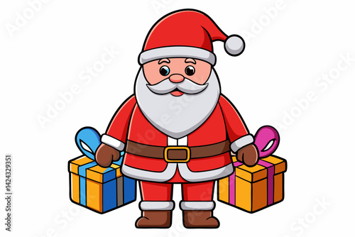 santa, christmas, claus, holiday, santa, gift, christmas, cartoon, red, vector, present, hat, winter, illustration, celebration, white, isolated, box, happy, snow, character, beard, merry, season, cute