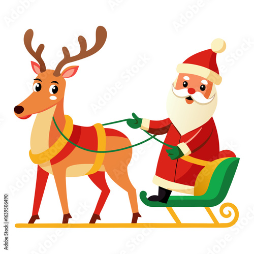 christmas, reindeer, santa, cartoon, cervid, vector, christmas, holiday, animal, winter, illustration, claus, card, rudolph, celebration, gift, cute, sleigh, hat, fun, design, snow, december, season, funny