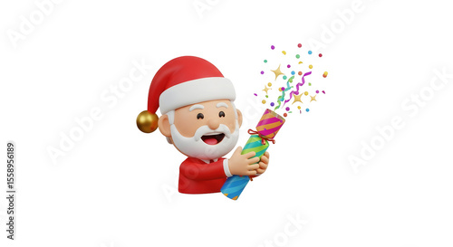 transparent, santa, cracker, christmas, new, year, celebration, party, confetti, holiday, festive, man, cute, cartoon, character, red, white, happy, joyful, fun, surprise, present, gift, winter, december, tradition, seasonal, magic, snow, merry, cheer, season, costume, beard, hat, isolated, clip, art, cut, out, three-dimensional, render, rendering, pop, explode, burst, colourful, bright