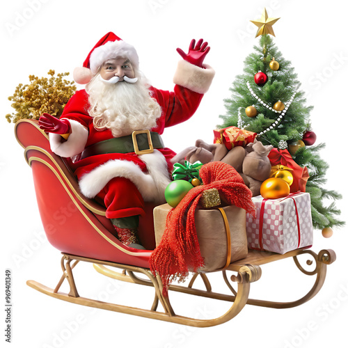 eye, expression, hat, angry, gesture, emotion, congratulation, gift, present, cervid, reindeer, santa, christmas tree, christmas, christmas decoration, new year, winter, male, adult, person, year, red wall, fir, chair, beautiful, sitting