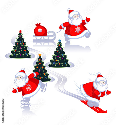 santa, present, slope, sport, christmas, cartoon, celebration, december, decoration, design, element, fir tree, fun, funny, gift, greeting, happy, holiday, ice, illustration, invitation, joy, new, north, season, seasonal, skate, ski, snow, snowflake, trail, tree, vector, winter, christmas, year, bag, hurry, quickly