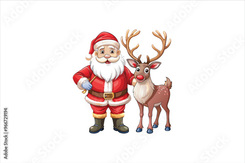 Santa with raindeer Clip Art Vectors & Illustrations .Santa and deer clip art. Santa vector.