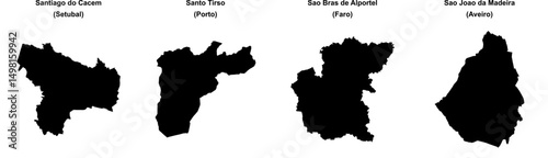 Santiago do Cacem, Santo Tirso, Sao Bras de Alportel, Sao Joao da Madeira outline maps