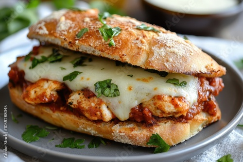 Satisfying Chicken Parmesan Sandwich with Marinara and Cheese