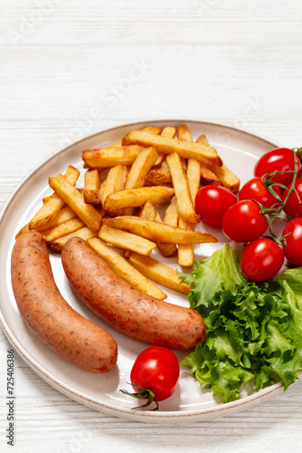 spice, french fries, fennel, wooden, lettuce, potato, topview, fried, portion, tomatoes, table, spicey, hot, sausage, italian, minced meat, food, eatery, pork meat, coriander, cooked, cafes, fresh, up high, rustic, closeup