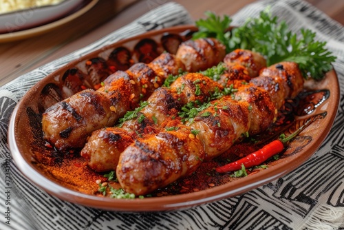 Savor the rich flavors of succulent chicken kebabs, roasted to perfection and infused with fragrant herbs and spices, served on a bed of tender meatballs for a mouth-watering culinary experience