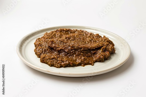 isolated, white, background, plate, meat, aromatic, savoury, bar-b-q, paste