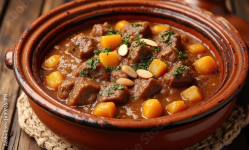 beef stew, cooking, vegetable, almond, food photography, brown sauce, garnish, warm colors, comfort food, dinner, home cooking, epicure, flavorful, culinary, ingredient, meat, parsley, gold, rustic, fine dining, cosy, nutritional, bowl, spice, satisfaction, homemade, delectable, cookery, plating