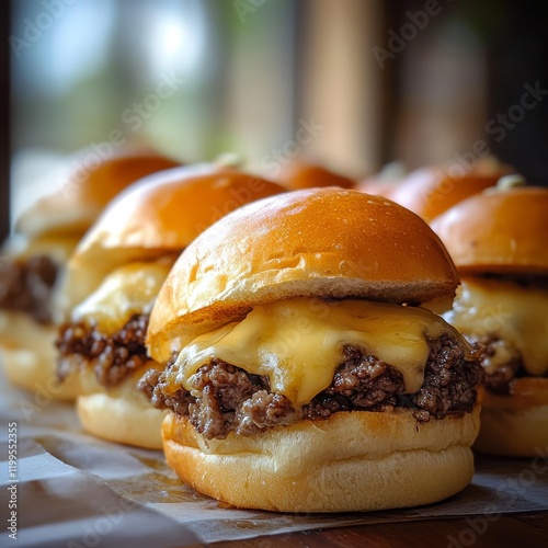 Savory cheesy sliders delight gourmet food market high-end cuisine clean aesthetic close-up culinary innovation