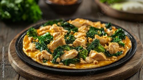 Savory Chicken and Broccoli Dish on a Wooden Serving Board