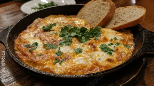 food, egg, cheese, bread, cookery, dish, breakfast, meal, delicious, tasty, appetising, eatery, lunch, dinner, culinary, gastronomy, cooking, receipe, homemade, epicure, savoury, plate, pan, plaster bandage, iron, brown, white, yellow, green, tomatoes, herb, spicey, rich, creamy, texture, favor, aroma, fresh, warm, comfort, home, eat, photo, epicure