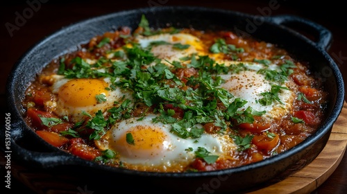 egg, tomatoes, breakfast, brunch, middle eastern, mediterranean, food, cookery, delicious, healthy, homemade, cooking, spicey, sauce, parsley, herb, vegetarian, dish, meal, pan, cast iron, yolk, protein, fresh, tasty, flavorful, aromatic, rustic, traditional, epicure, culinary, receipe, organic, pepper, seasoning, lemon, citrous, food photography, still life