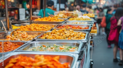 buffet, catering, dish, cookery, variety, selection, meal, dinner, lunch, tasty, delicious, appetising, colourful, vibrant, fresh, hot, steaming, spicey, savoury, crowd, people, urban, city, night, evening, lifestyle, eating, food photography, culinary, gastronomy, texture, closeup, detail, meal, serving