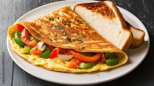 omelet, breakfast, food, egg, vegetable, healthy, delicious, brunch, toast, pepper, onion, parsley, protein, meal, cookery, savoury, homemade, culinary, fresh, nourishment, vitamin, morning, start, energy, vegetarian, diet, wholesome, tasty, cafes, eatery, menu, cooking, culinary arts, epicure, plate, table, dark background, food photography