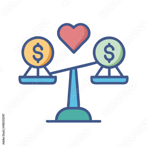 Scale with Dollar and Heart Icon Representing Work-Life Balance and Financial Wellbeing