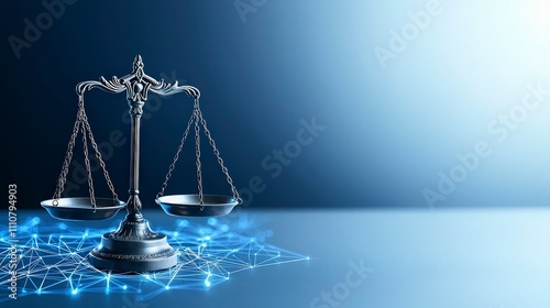 scale, justice, law, legal, balance, equality, fairness, law firm, lawyer, lawyer, court, judge, gavel, legal system, digital, network, technology, connection, cyberspace, datum, innovation, future, abstract, background, blue, dark blue, concept, modern, design, illustration, symbol, icon, business, global, communication, network security, artificial intelligence